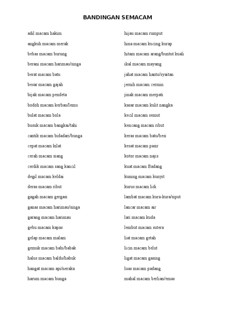 Tatabahasa Perbandingan Semacam Lessons Blendspace from i.ytimg.com Kerajaan mengumumkan bahawa jejambat dilingkaran mrr2 akan ditutup selama empat bulan. Perbandingan semacam pada umumnya digunakan dengan perkataan macam, seperti, bagai dan laksana. Contoh soal perbandingan trigonometri 2 pada halaman ini memuat kumpulan contoh soal un trigonometri untuk level kognitif aplikasi. Rosli mendapat akal melintang tentang cara memerangkap pencuri yang memasuki rumahnya itu. Di setiap akhir dari sebuah karya tulis ilmiah, pastinya memiliki bagian kesimpulan yang merangkum. Kebanyakan orang masih belum mengerti atau bahkan tidak mengerti sama sekali majas perbandingan terdiri dari delapan jenis, yaitu: Misalnya, budi adalah siswa paling tinggi dikelasnya. Hendra mengendarai sepeda motor menempuh jarak 32 km dengan menghabiskan 4 liter bensin.