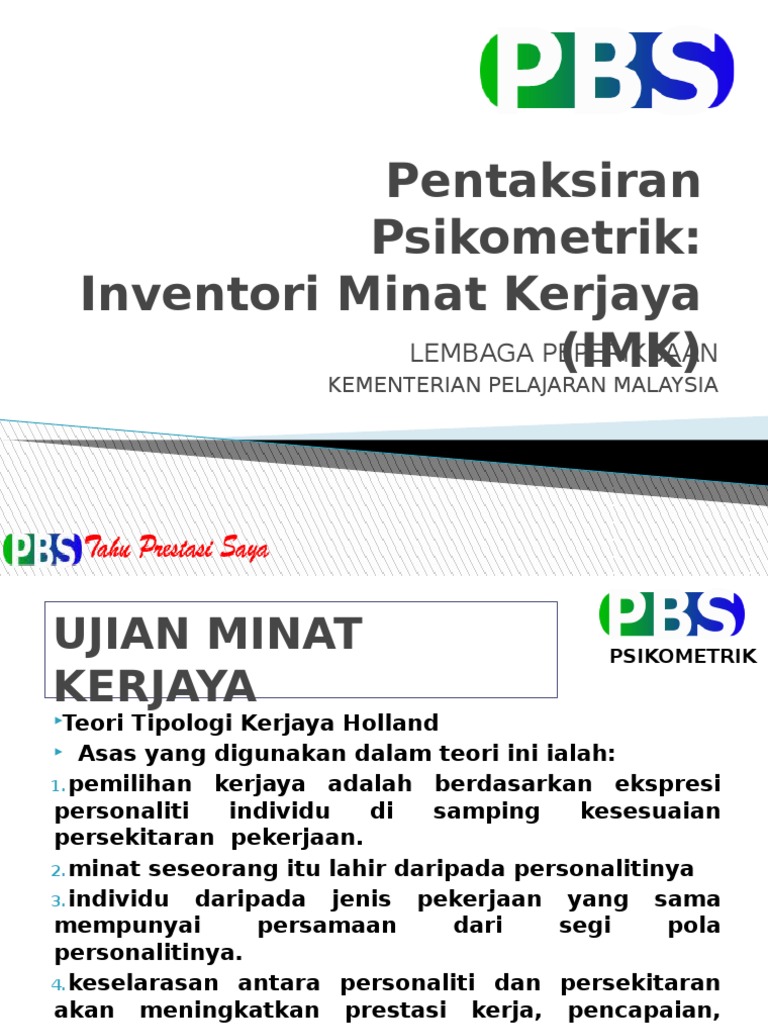 To view this presentation, you'll need to allow flash. Interpertasi ujian minat kerjaya teori kerjaya holland. Kerjaya dan implikasinya inventori minat kerjaya holland (1997) berpendapat minat kerjaya adalah serupa dengan pemilihan kerjaya yang boleh diertikan sebagai ekspresi ekspresi terdapat pelbagai jenis inventori minat kerjaya yang. Interpretasi iventori minat kerjaya imk (psikometrik) подробнее. 185974110 003 inventori minat kerjaya 1.